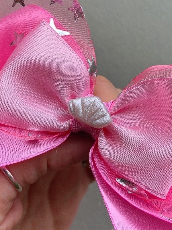 Moño de raso cosida a mano y porcelana fría artesanal