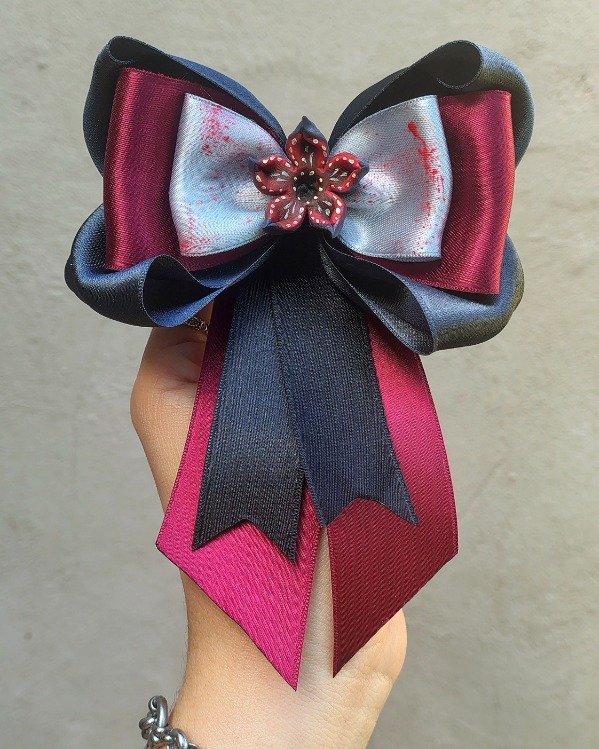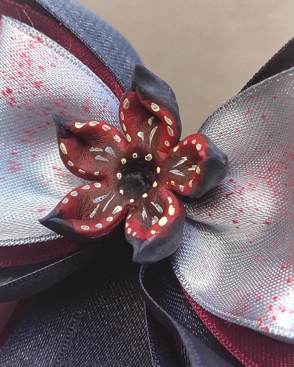 Raso pintado a mano, con aplique de porcelana fría artesanal
