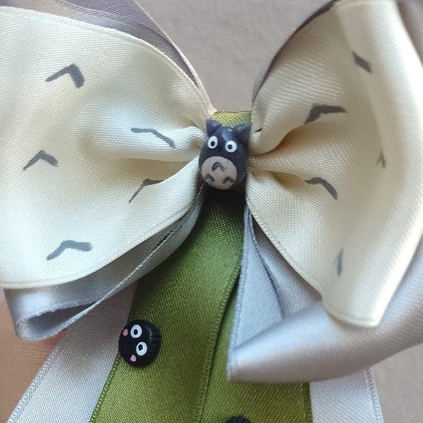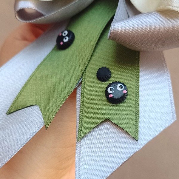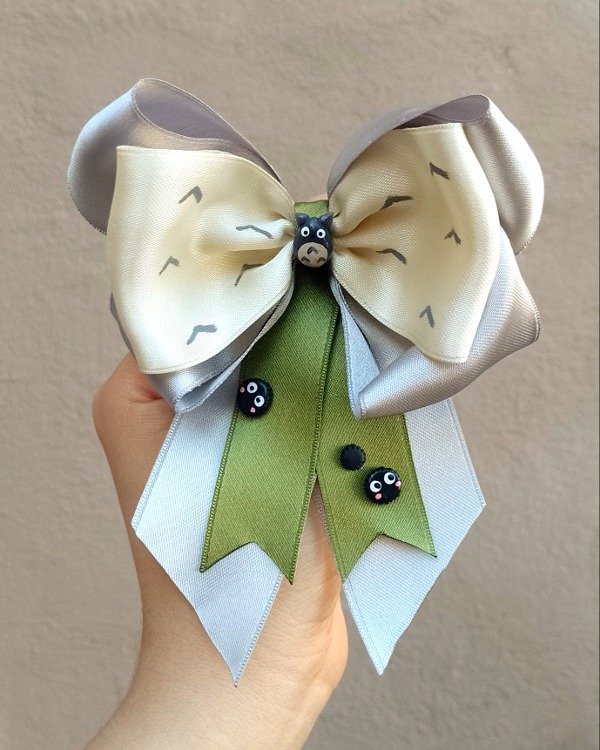 Moño de cinta de raso pintado a mano con aplique de porcelana fria pintada a mano
