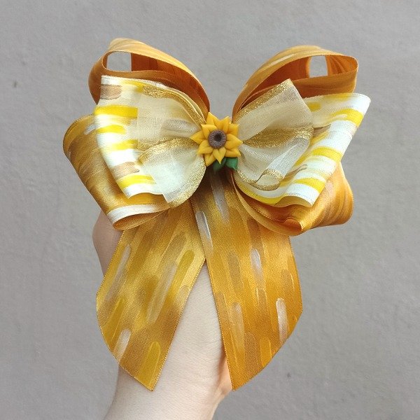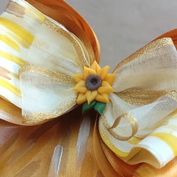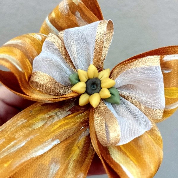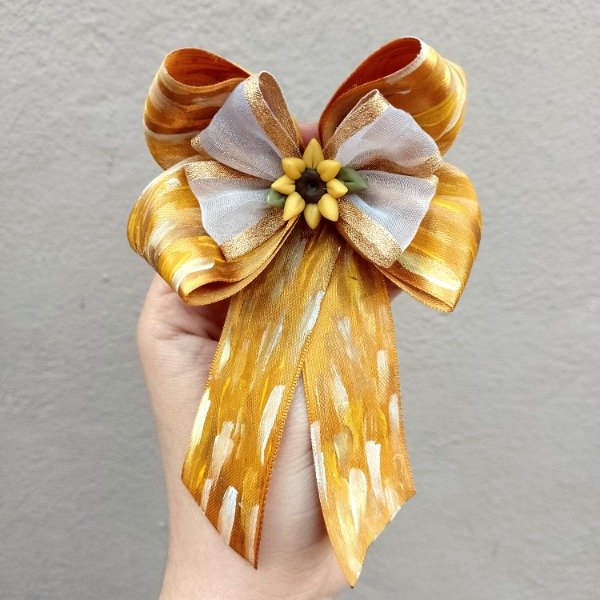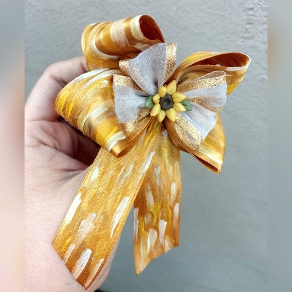 Cinta de razo pintada a mano en su totalidad, cinta de seda con bordes dorados y aplique de porcelana fría artesanal