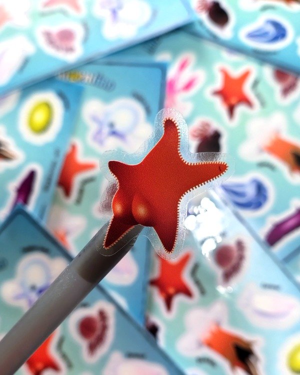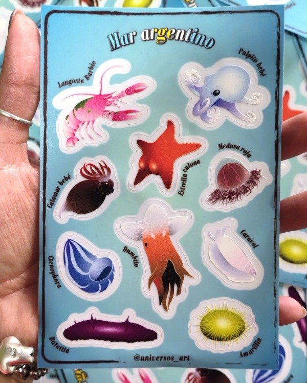 Planchita de vinilos transparente de mariposas, flores nativas y criaturas del mar argentino